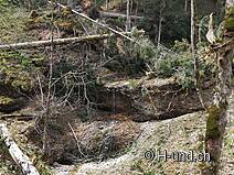 Environ 20 minutes après le Tösscheidi, nous tournons à droite, en montant. De bonnes chaussures sont recommandées ! Par temps sec, l'aventure dans les grottes de Brandhöhle vaut la peine pour les marcheurs aux pieds sûrs. Sous le toit de roche de Nagelfluh, il y a une zone de barbecue confortable et sèche, même avec un puits.