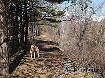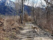Nel mezzo ci sono dei sentieri che portano direttamente al fiume. Kaya gode di questi già ora (hanno oggi 20 gradi) per sfogarsi davvero e rinfrescarsi.