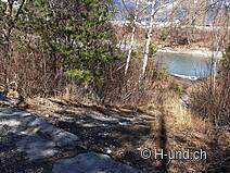Seguiamo quindi il sentiero comodamente (in mezzo con deviazione al fiume) fino al ponte (possibile anche per sedia a rotelle o passeggino), attraversiamo il Reno e risaliamo a piedi la corrente fino al nostro punto di partenza.
