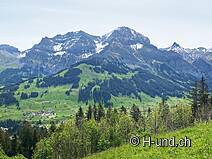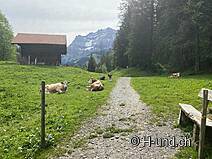 Comme nous avons fait la randonnée dans l'ordre inverse, le sentier nous a d'abord mené le long de l'Allenbach. Principalement à l'ombre de la forêt et avec des montées faciles, un parcours très agréable. L'Allenbach offre de nombreuses possibilités de baignade pour le chien. Après environ une heure, vous arrivez au restaurant Schermtanne. Ensuite, on emprunte le sentier d'altitude pour percevoir les vallées de l'Engstlige et de l'Allenbach pour ainsi dire à vol d'oiseau. Un panorama étonnant ! Comme il y a peu d'ombre sur ce tronçon, il n'est pas recommandé de marcher par temps très chaud.