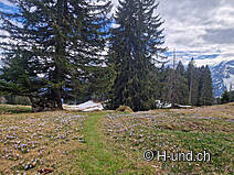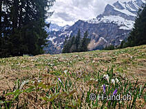 En fait, la pluie était annoncée pour aujourd'hui. Mais grâce au plus vieux des Glaronais, le foehn, les premières éclaircies apparaissent déjà vers midi - notre signal de départ pour découvrir l'état actuel des crocus à Braunwald.