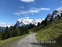 Nous commençons la journée de randonnée par le téléphérique de Wengen jusqu'au point de départ Maennlichen (2222 m d'altitude). De là, des alpages au romantisme sauvage avec les meilleures vues sur la face nord de l'Eiger mènent au Berghaus Alpiglen (1616 m d'altitude). Fraîchement fortifiés pour la suite du voyage, nous prenons la liberté de prendre le train jusqu'à Kleine Scheidegg (les chiens sont gratuits). Il est essentiel de prévoir suffisamment de temps pour profiter du magnifique paysage de montagne à 2061 mètres. Ensuite, cette randonnée de difficulté moyenne nous fait passer par les pentes de la légendaire descente du Lauberhorn. Avec une vue magnifique sur l'Eiger, le Mönch et la Jungfrau, nous retournons via Wengernalp à notre point de départ à Wengen (1274 mètres au-dessus du niveau de la mer).